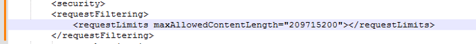 <requestLimits maxAllowedContentLength="209715200"/>