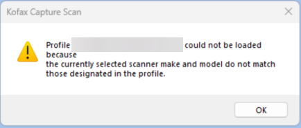 After changing the scanner’s make and model to a new one and installing a new MDL file on a workstation, the existing scanner profiles stored in the local scanner profile location, which were previously connected to the old scanner, now display an issue due to a mismatch in the scanner's make and model.